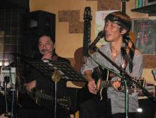 終盤のヒートアップ! 今回はビヤ樽を足乗せに…おっと!中はカラだす(笑) 盛況にLIVE終了!
