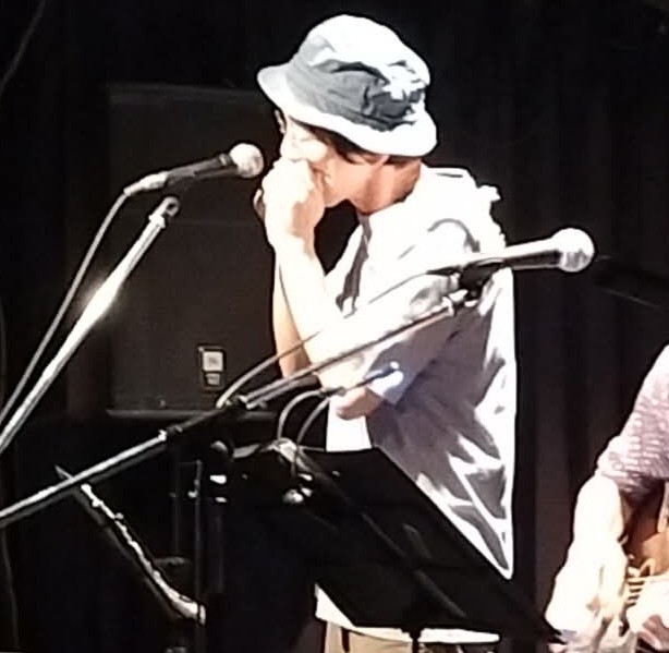 アンケートでも好評。彼には田野の無茶振り(笑)で、「ブルース色の雨に濡れてる」のBハープも吹いてもらった♪
