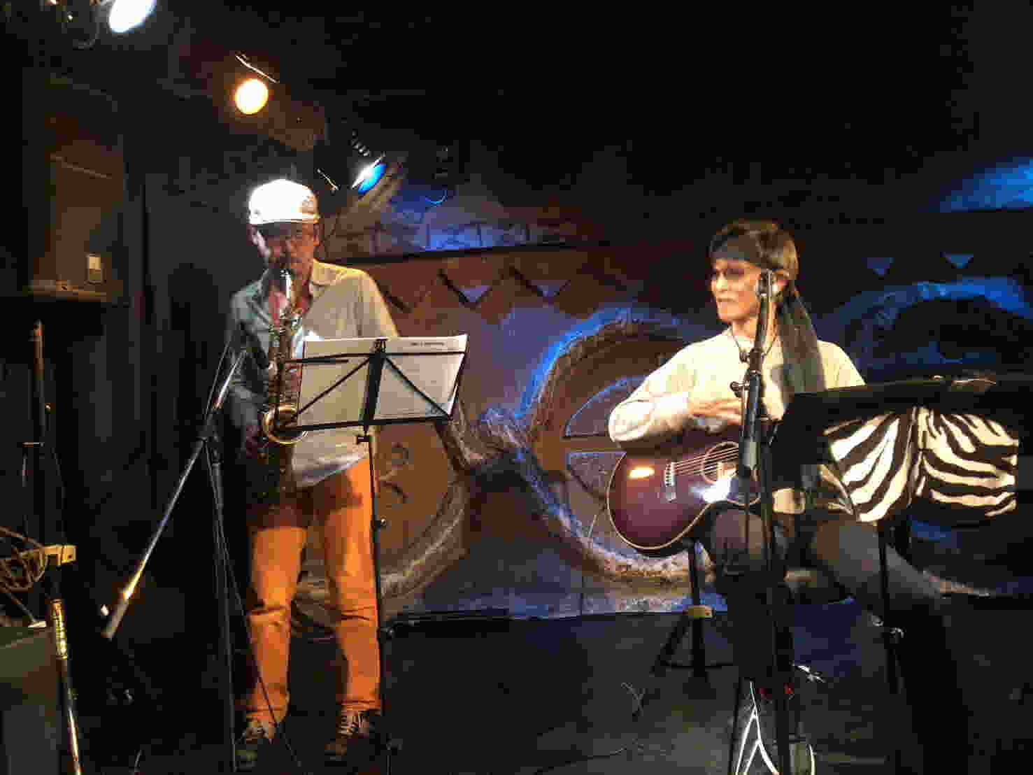 この日はOAのまつむらあきひろさんが普段一緒にLIVEをしているSAXのモリヤミヤウチさんが登場。「イルミネーション」をこの日初めて合わせると絶賛の嵐でした♪