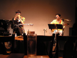 リハ後、初出演の Paradise Cafe 21さんの客席にて♪ もっちゃんの計らいで各席に味噌カツが振る舞われ、LIVEがスタート♪