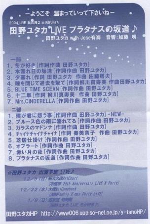 田野ユタカ LIVE “プラタナスの坂道” 04年11月20日 西荻窪「奇聞屋」
