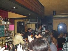 終盤のヒートアップ! 今回はビヤ樽を足乗せに…おっと!中はカラだす(笑) 盛況にLIVE終了!