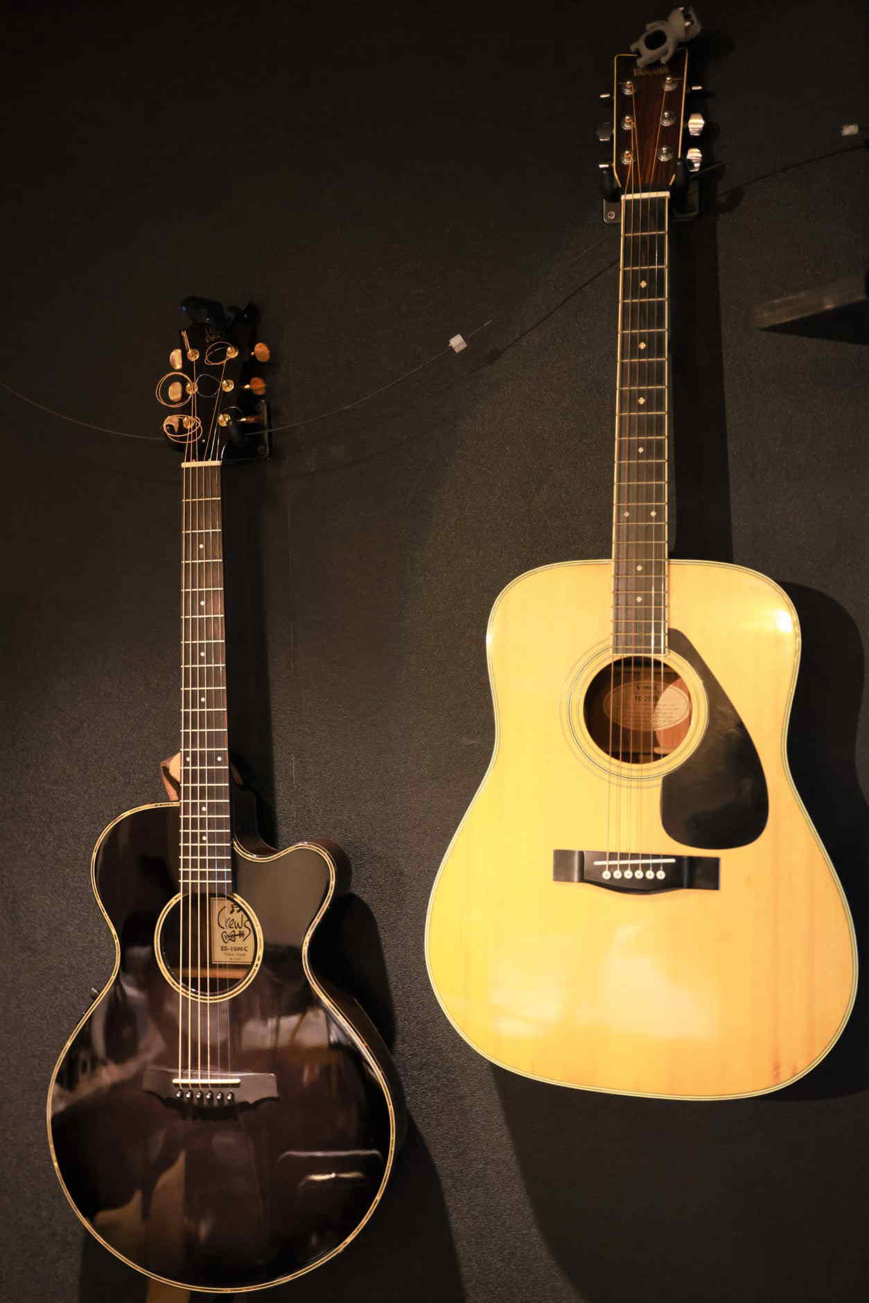故久保田マスターのギターの脇に田野のギターを さあ2年ぶりのLIVE、うんと楽しもう!
