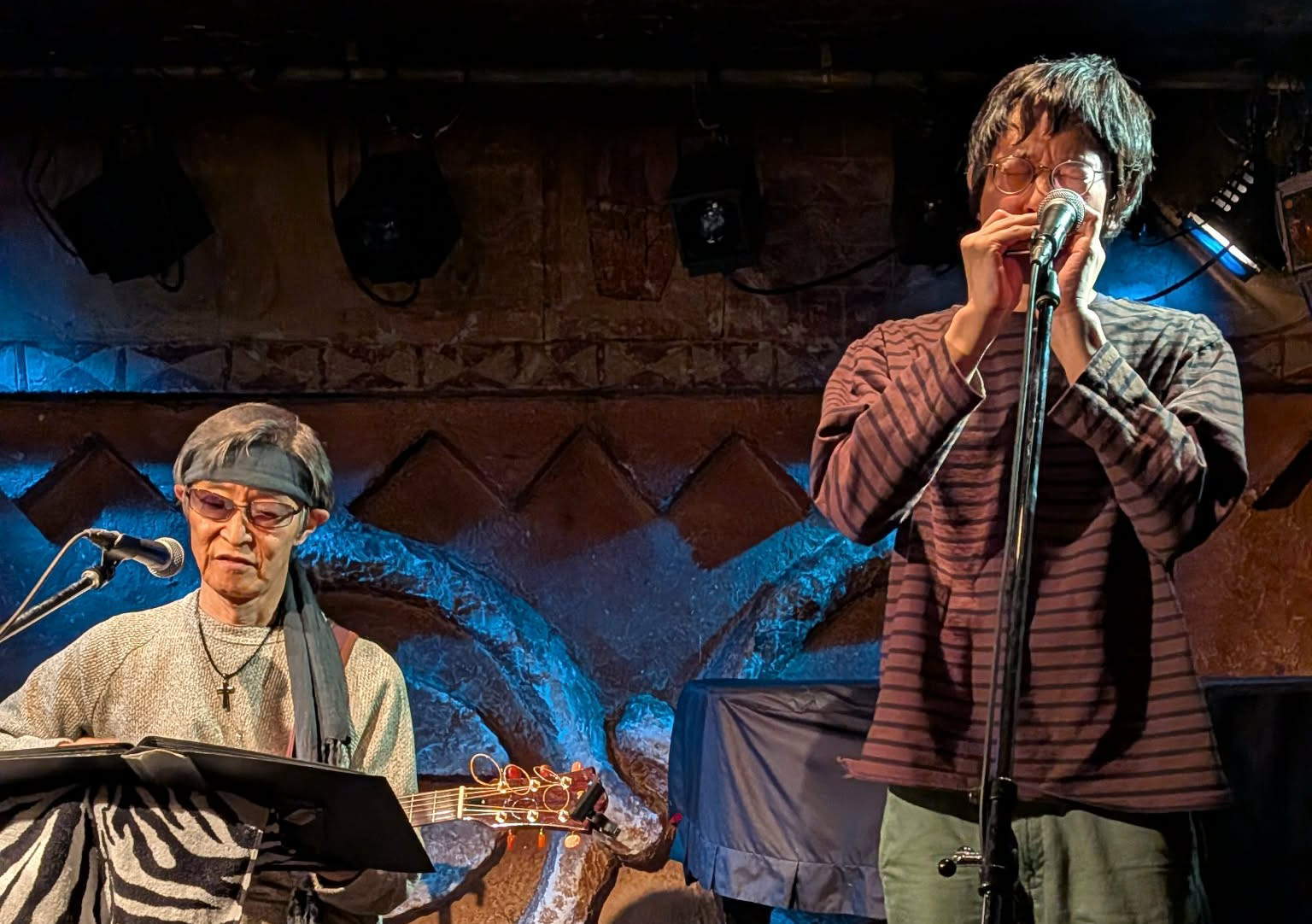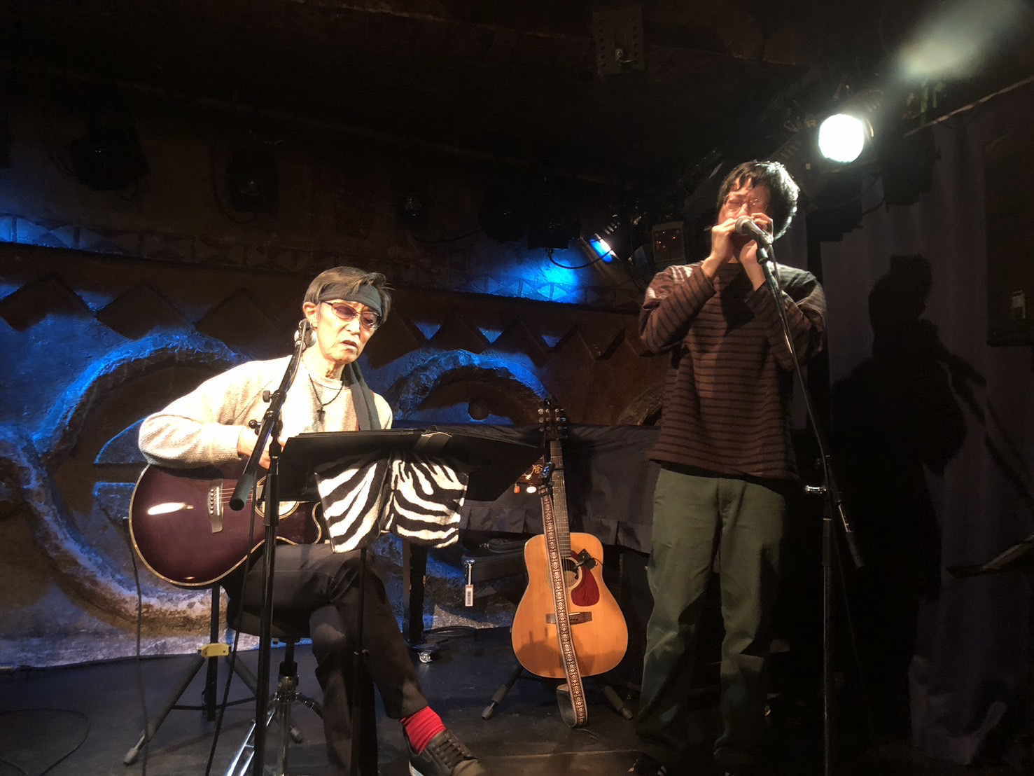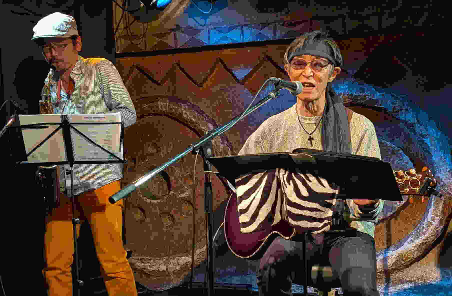 OAでもうお馴染みになってくれているまつむらあきひろさんがブルースハープとコーラスでバックアップしてくれた"ブルース色の雨に濡れてる"♪