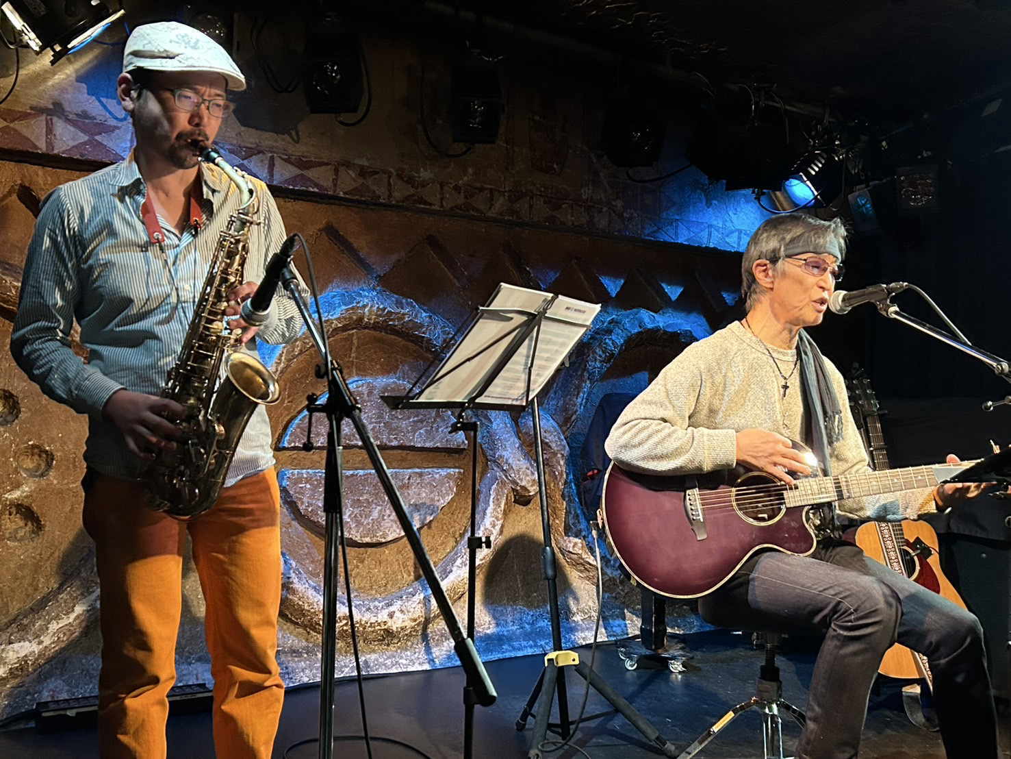 この日はOAのまつむらあきひろさんが普段一緒にLIVEをしているSAXのモリヤミヤウチさんが登場。「イルミネーション」をこの日初めて合わせると絶賛の嵐でした♪