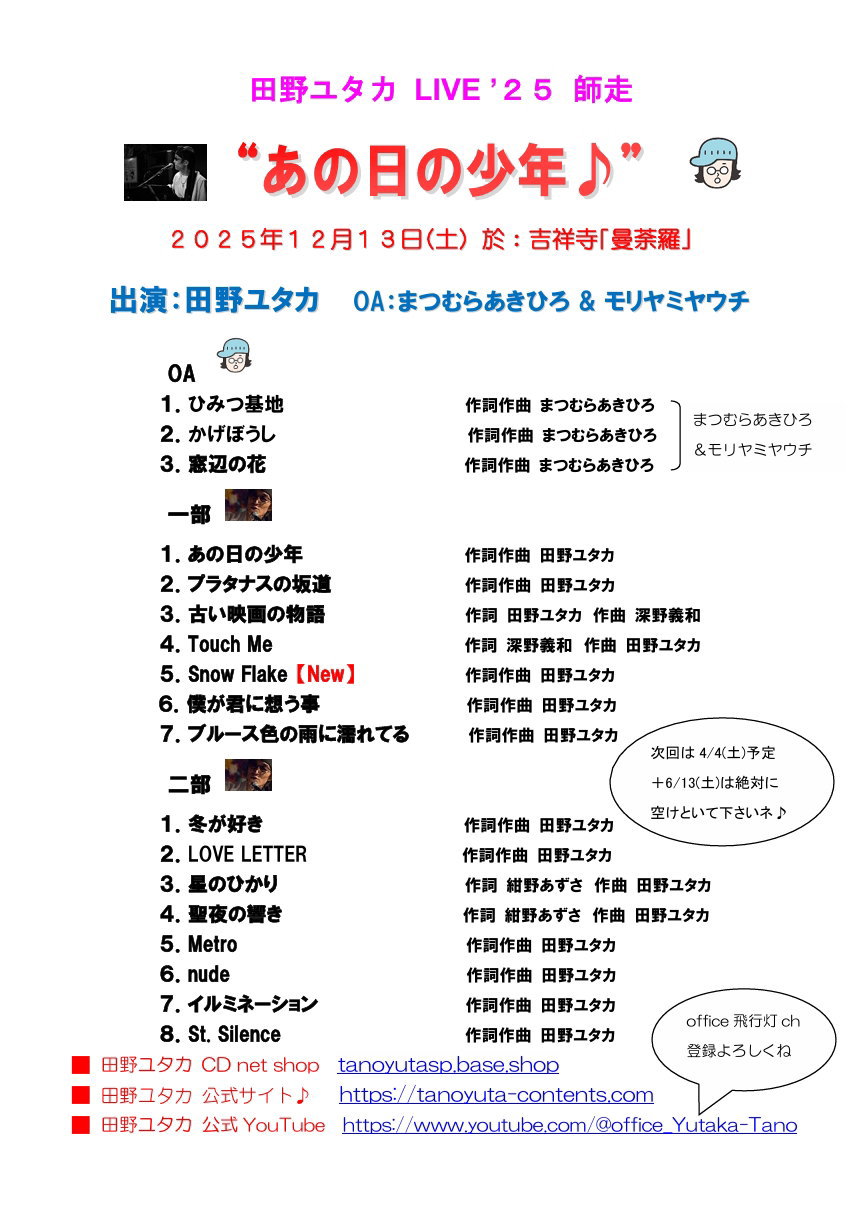 田野ユタカ LIVE'25 師走“あの日の少年”♪