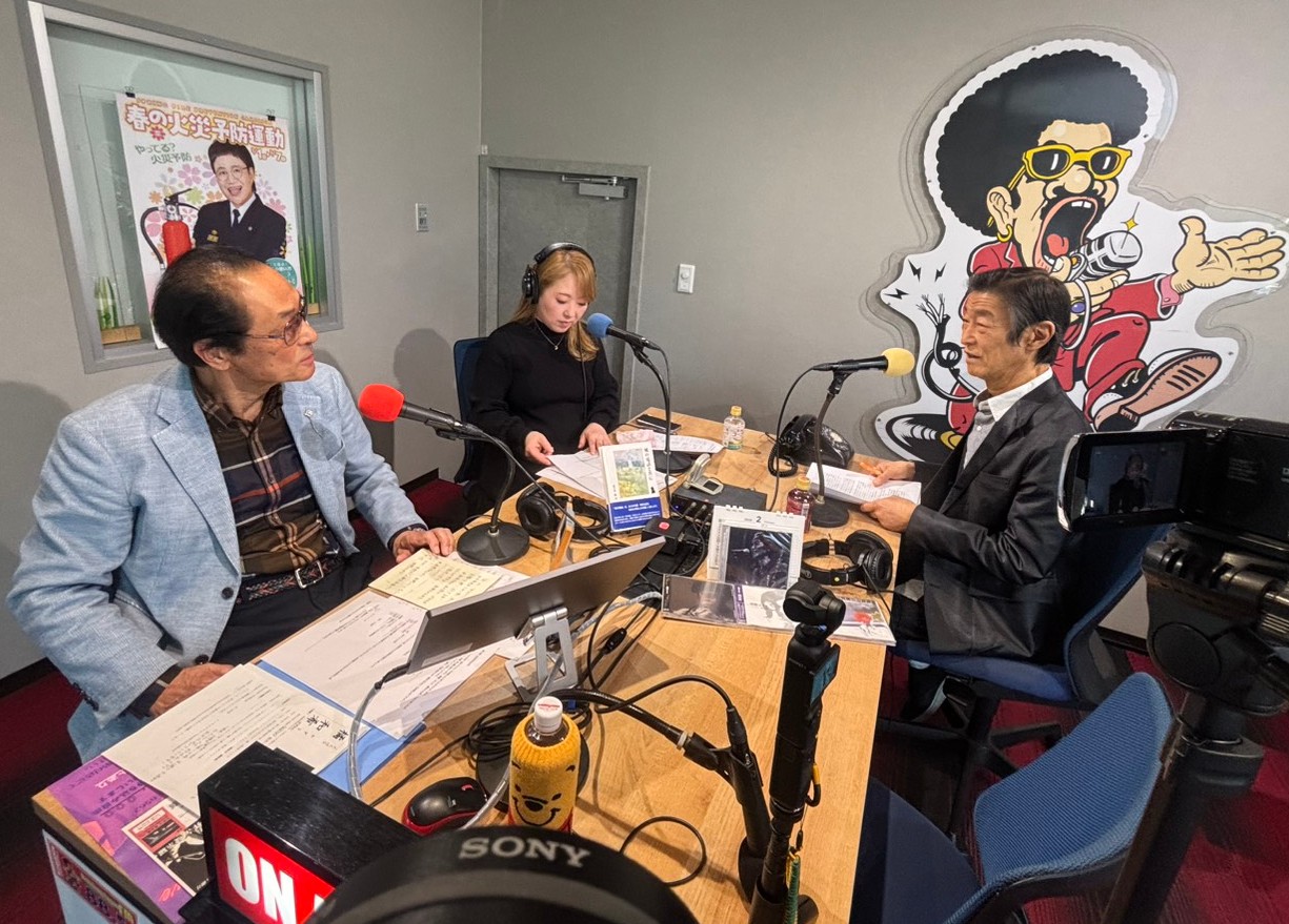 外から見るサテライトスタジオ↑ 本番スタート♪田野は一昨年亡くなった編曲家の故西村幸輔さんに風の電話をかけました。