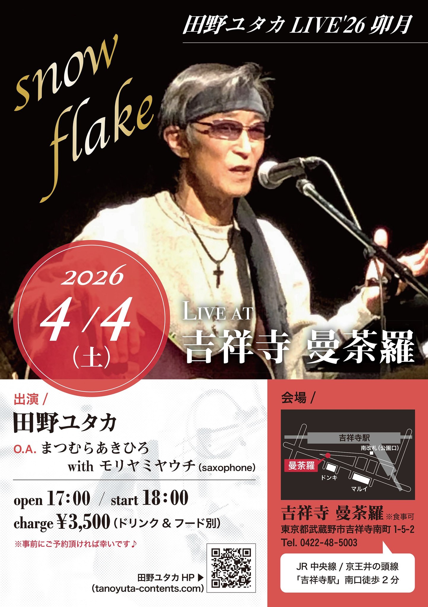 | □ 2022年3月26日 大塚「Welcomeback」 田野ユタカ LIVE 2022春“音楽を取り戻せ”♪ □ 2022年5月3日 大塚「Welcomeback」 田野ユタカ LIVE 4th レコ発LIVE“抑圧の時を越えて”♪ □ 2022年5月7日 八ヶ岳「Palm Spring」 田野ユタカLIVEツアー2022レコ発LIVE“音楽のチカラ”♪ □ 2022年9月23日 千葉中央「詩 音」 田野ユタカLIVEツアー2022 千葉 “だから海に来た”♪ □ 2023年6月10日 巣鴨「手風琴」 田野ユタカ LIVE 2023初夏 “つれづれ独り語り2023”♪ □ 2023年9月23日 阿佐ヶ谷「harness」 田野ユタカ LIVE 2023秋 “つれづれ独り語り@harness”♪ □ 2023年12月6日 東中野「Caféじみへん」 サスケ&田野ユタカ LIVE"あの~ちょっと待って東京"♪ □ 2024年1月14日 阿佐ヶ谷「harness」 田野ユタカ LIVE 2024冬 “つれづれ独り語り”♪ □ 2024年3月20日 阿佐ヶ谷「Oil City」 田野ユタカ LIVE 2024春 “綺麗事のマジシャン”♪ □ 2024年5月11日 八ヶ岳「Palm Spring」 田野ユタカ LIVEツアー’24 八ヶ岳 “約束の場所へ”♪ □ 2024年6月8日 東中野「Caféじみへん」 田野ユタカ LIVE '24 夏 “啼けない狼”♪ □ 2024年9月23日 阿佐ヶ谷「harness」 田野ユタカ LIVE 2024秋 “つれづれ独り語り”♪ □ 2024年11月16日 吉祥寺「曼荼羅」 田野ユタカ LIVE 2024 霜月 “Studio R/D”♪ □ 2025年3月20日 吉祥寺「曼荼羅」 田野ユタカ LIVE 2025 弥生 “貴方の笑顔に逢いたい”♪ □ 2025年5月3日 吉祥寺「曼荼羅」 田野ユタカ LIVE 2025 皐月 “Tokyo City Lights”♪ □ 2025年9月20日 吉祥寺「曼荼羅」 田野ユタカ LIVE 2025 長月 “あの歌が聞きたい”♪ □ 2025年11月12日 東中野「じみへん」 サスケ&田野ユタカ LIVE “黄金色の風景画”♪ □ 2025年12月13日 吉祥寺「曼荼羅」 田野ユタカ LIVE 2025 師走 “あの日の少年”♪ |
