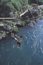 いい格好しようとしてびびってる兄さん達の顔も面白い。意を決して飛び込むと拍手喝采です。