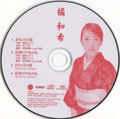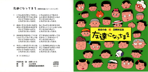 深野義和音楽事務所の関連CD 「青空の会」さんへの書き下ろしオリジナルイメージソング ※非売品 ![]() 友達になっちまえ/詞・曲・歌 田野ユタカ 編曲 Jose有海 イラスト Lazy Yoshimi マスタリング 加藤明 歌のお姉さん“はせともみ”歌唱の童謡曲 ※非売品 ![]() タンポポれっしゃ 作詞 紺野あずさ 作曲 田野ユタカ 編曲 Jose有海 船橋西ロータリークラブさんのクラブソング ※非売品 ![]() 「友のいる町」 監修 星野哲郎 作詞 紺野あずさ 作・編曲 若草恵 歌唱 田野ユタカ 橘和希/高知でのものも (作詞:紺野あずさ 作曲:田野ユタカ) ※2010年7月9日 全国一斉発売 おりょうの恋(作詞:紺野あずさ 作曲:岡千秋)カップリング曲 ![]() ![]() ¥1,200− ※JoySound-UGAでカラオケ配信中 |