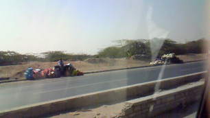 この国の道路は比較的整然としているが、砂っぽい(笑)。交差点は必ずロータリー形式。